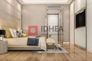 ingresso su luminoso soggiorno con affaccio tramite ampie vetrate sul terrazzo, un comodo disimpegno ci accompagna alla zona notte dove troviamo camera matrimoniale di circa 16 mq. con bagno in camera, ed ulteriori due camere di 12 mq. e 10 mq., quest'ultima dotata di accesso diretto al terrazzo privato. Completano la proprietà un'ulteriore bagno finestrato e locale lavanderia.