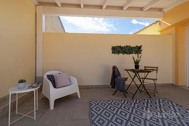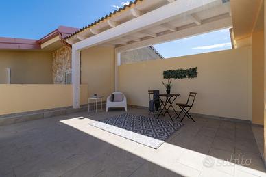 L'accesso all'abitazione avviene da un ingresso indipendente al piano terra , garantendo privacy e autonomia. Una scala esterna conduce al primo piano, dove si trova una terrazza a livello, uno spazio vivibile che può essere sfruttato come zona relax, per pranzi all'aperto e momenti conviviali. Dalla terrazza si entra direttamente nella zona giorno, con angolo cottura, luminosa e con una buona distribuzione degli spazi.