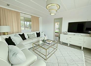 Tutte le unità sono composte da una zona giorno luminosa con cucina a vista e grande vetrata scorrevole che si apre sul portico o sul terrazzo, disimpegno, due bagni finestrati, una camera matrimoniale, una camera doppia e una lavanderia separata.