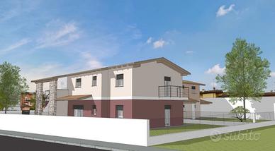 In fase di realizzazione, proponiamo un elegante complesso residenziale composto da una villa singola su due livelli e due appartamenti indipendenti, uno al piano terra con giardino e uno al primo piano con ampio terrazzo.