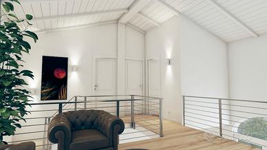 Si accede all'abitazione attraverso cortile privato con posto auto e bellissimo loggiato colonnato, ingresso interno al piano terra su grande soggiorno con zona cottura di quasi 50 mq, una camera matrimoniale, bagno e lavanderia. Al primo piano, una camera da 12 mq, un bagno e una camera matrimoniale da 15 mq con terrazzino privato.