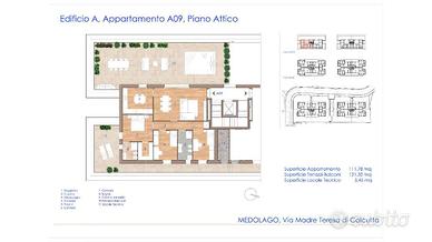 Rif: 30631001-2900 (193286883) - In vendita a Medolago, proponiamo nuove costruzioni di alta qualità e dal design moderno, con prevista consegna a fine 2025. (L'immobile si trova in una nuova via, ovvero la via Madre Teresa di Calcutta, a soli 50 metri sulla sinistra da via della Fornace) L'immobile si estende su una superficie totale di 112 metri quadrati per l'appartamento e 121 metri quadrati per il terrazzo e i balconi, quindi la soluzione ideale per chi ama vivere la propria abitazione anche all'esterno ma con tutta l'indipendenza e privacy che offre un Attico!Perfettamente suddivisa in 4 locali spaziosi e luminosi, ideali per una famiglia o per chi desidera uno spazio abitativo ampio e confortevole. La zona soggiorno e cucina di ampie metrature affacciano entrameb sull'ammpia terrazza dove e' anche possibile installare una vasca idromassaggio, godendo della meravigliosa vista sul Parco Adda. All'interno troviamo 3 camere da letto, perfette per ospitare comodamente gli abitanti della casa e per garantire la privacy di ognuno. I due bagni, uno dei quali en-suite, sono dotati di sanitari di alta qualità e moderni, per un comfort totale. La Camera Matrimoniale inoltre e' dotata di CABINA ARMADIO. Possibilita' di personalizzare le finiture interne con materiali di pregio e di tendenza, per offrire un'esperienza abitativa comoda e di classe. L'atmosfera è accogliente e luminosa, grazie alle ampie finestre che permettono una perfetta illuminazione naturale, tutte dotate di tapparelle elettriche. Inoltre, l'immobile è dotato di ogni comfort, come riscaldamento autonomo a pavimento , predisposizione di aria condizionata e antifurto, pannelli Fotovoltaici e VMC per garantire il massimo benessere in ogni stagione. Situato in una zona tranquilla e ben collegata, questo immobile rappresenta una soluzione ideale per chi desidera un'abitazione moderna, di qualità - Classe: A4