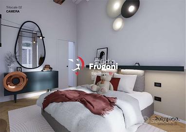 Gli ingressi degli appartamenti si aprono al primo piano su un'ampia zona giorno openspace di 40 mq con predisposizione per un bagno di servizio nel sottoscala e balcone privato. Al secondo piano troviamo la zona notte che si compone di un ampio bagno finestrato, una camera doppia e la camera padronale con cabina armadio.