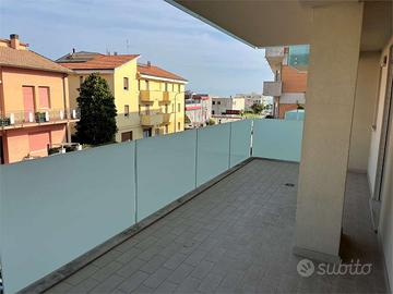 entrare in casa e lasciare fuori ogni rumore e ogni fastidio, non è soltanto un sogno bensì una realtà a Marina di Montemarciano. Abitare nel massimo comfort sia all'interno che all'esterno, grazie a due fantastici terrazzi - uno dei quali con parziale vista mare - dove trascorrere ore serene con amici e parenti. A due passi dal centro di Marina di Montemarciano, vicino ai migliori negozi e al superstore Famila (incluso supermercato alimentare), e nello stesso tempo vicinissimo a mare e spiaggia, rimane un solo appartamento da personalizzare a tuo gusto! In edificio di moderna concezione, con ascensore e impianto fotovoltaico sul tetto che alimenta le pompe di calore per avere riscaldamento e raffreddamento a basso costo in classe A4. La concezione ultra moderna si ammira avvicinandosi fin dall'esterno, dato che i balconi e i terrazzi sono bordati da pannelli in vetro con una colorazione caratteristica e un aspetto molto elegante. L'eleganza continua all'interno dell'edificio, con un ascensore in metallo-vetro e le scale circondate da pannelli isolanti in legno. Al primo piano rimane un solo appartamento in vendita fra i 6 costruiti e già abitati. Superfici abitazione di circa 106 mq, oltre a due terrazzi e un balcone per ulteriori 42 mq. Possibilità di ottenere una cantina di 18 mq al piano interrato, oppure un garage nell'edificio di fronte, o in alternativa due posti auto riservati proprio a fianco del portico sottostante. L'appartamento è previsto con una suddivisione quadrilocale: soggiorno con accesso primo terrazzo (frontale), cucina abitabile aperta a vista sul soggiorno per costituire un unico ambiente living, che prosegue sul secondo terrazz RIFERIMENTO: SS114 CLASSE ENERGETICA: 40 kWh/m2 a