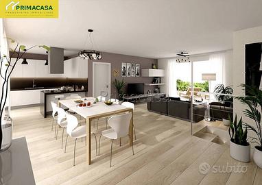 Proponiamo in vendita, in esclusivo contesto residenziale di nuova costruzione, un'introvabile appartamento al piano terra con 280mq di giardino privato, in consegna per Settembre 2026! L'unità è inserita in un edificio di sole 2 unità, con ingressi indipendente e senza alcun onere condominiale. Questo immobile offre un ampio soggiorno con angolo cottura, caratterizzato da un'ampia finestra che affaccia sul pergolato presente in giardino, mentre la zona notte è composta da 3 camere da letto e due bagni finestrati. Completa la soluzione il garage con angolo lavanderia ed il posto auto privato. L'appartamento è dotato di ottime finiture e rispetta gli standard di risparmio energetico più elevati, con impianto fotovoltaico da 4,5kwh, cappotto termico, riscaldamento a pavimento, ottimi per assicurare comfort sia in estate che in inverno. Non perdere l'opportunità di vivere a pochi passi dal centro in un ambiente moderno e sostenibile! Maggiori informazioni in ufficio. RIF 44