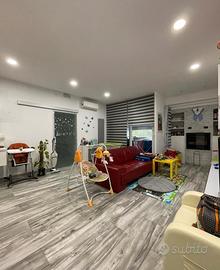 Posto al piano primo é composto da : ingresso , soggiorno con cucina , due camere da letto , due bagni , doppi rispostigli , balcone coperto , oltre cantina al piano seminterrato.