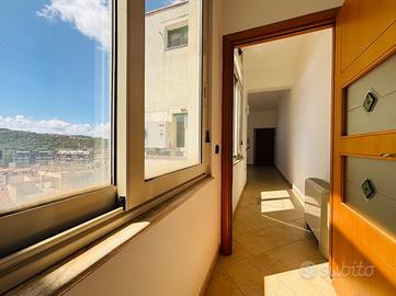 Vendesi a Nuoro, nella centralissima Piazza Crispi appartamento panoramico, completamente ristrutturato a nuovo. L'immobile sito al quarto piano di una palazzina storica ha una superficie calpestatile di 150 mq.. Si compone di un ampio ingresso su sala con balcone, doppi servizi, 4 ampie stanze di cui tre con balconi panoramici che si affacciano sulla storica Piazza delle Poste Centrali di Nuoro, disimpegno. infissi altamente performanti. Il riscaldamento è servito da termoconvettori caldo/freddo a parete di ultima generazione. Oltre alla vendita la proprietà può anche valutare un locazione aduso studio
