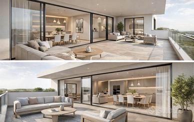 Il vero punto di forza è lo straordinario terrazzo panoramico di ben 140 mq, uno spazio esterno raro e prezioso, perfetto per momenti di relax, solarium, cene all'aperto o eventi privati: un'estensione naturale della casa che ne moltiplica il valore e la vivibilità. Completa la proprietà un garage al piano interrato, indispensabile per la massima comodità.