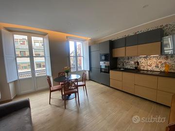 In una delle vie più storiche della città, esattamente nel Corso Vittorio Emanuele nella parte iniziale, in pieno centro cittadino a due passi dalla stazione e a ridosso delle facoltà universitarie Vi propongo un gioiello di appartamento all'interno di un palazzo storico del 1900 a pochi passi dalla Piazza Yenne. .Il fabbricato è composto da 4 piani e l'immobile si trova al 2° piano con un meraviglioso affaccio sul porto Cagliaritano che lo rende luminosissimo e molto panoramico. Tutto lo stabile è in ristrutturazione come anche l'immobile è stato appena ultimato, frutto di un attento e minuzioso lavoro, dove sono stati impiegati materiali di altissimo livello, super tecnologici, moderni e di design. Si tratta di un delizioso ed eccellente appartamento concepito con spazi aperti che si sviluppano su una superficie di 50 mq. Viene locato completamente arredato e corredato con la zona lavanderia completa di lavatrice e asciugatrice Il canone d'affitto comprende anche tutte le utenze. Euro 1.200,00