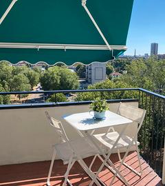 L' appartamento è composto da: zona giorno/notte con cucina a vista e letto singolo ( che si trasforma in matrimoniale), grande porta finestra su ampio balcone, con tavolino e sedie, che affaccia su cortile interno, bagno finestrato con box ampio doccia. Aria condizionata, nuovo, silenzioso e luminoso. Completamente ristrutturato, arredamento nuovo, porta blindata, infissi nuovi con doppi vetri. Vengono forniti biancheria, stoviglie ed elettrodomestici (lavatrice, phon, aspirapolvere, ferro da stiro).