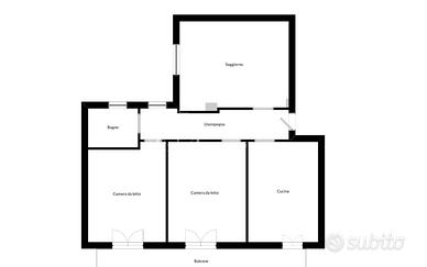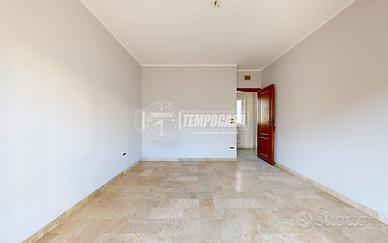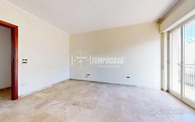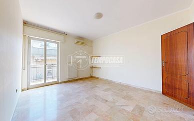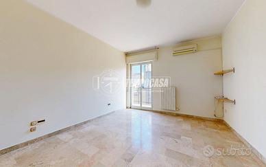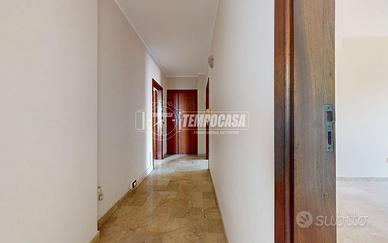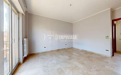 L'ingresso si apre su un disimpegno centrale dal quale, sulla sinistra, si accede alla cucina abitabile dotata di fracassè e portafinestra con affaccio su un balcone di 11 mq; sulla destra si sviluppa un ampio soggiorno con finestra e affaccio sul cavedio (non calpestabile). Proseguendo nel disimpegno si trovano due camere da letto matrimoniali, entrambe con accesso al balcone, e un bagno con vasca.