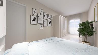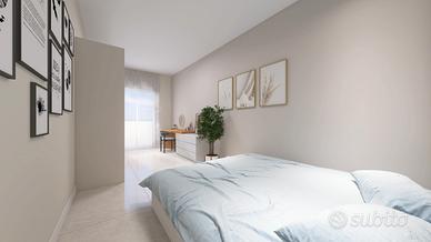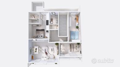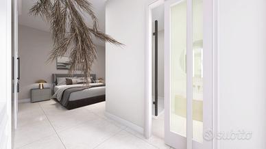 L'appartamento presenta una luminosa zona giorno con angolo cottura a vista e con sfogo tramite porta finestra sulla prima balconata della casa. Dal disimpegno, raggiungiamo le tre camere da letto, tutte matrimoniali, di cui una con bagno padronale e il bagno principale dotato di ampio piatto doccia.