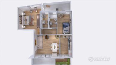 Il disimpegno centrale guida alla zona notte, che ospita due camere da letto e due bagni completi. La disposizione è valorizzata dalla doppia esposizione, con camere e bagni che godono di accesso diretto a una seconda veranda laterale, assicurando una luminosità e un ricircolo d'aria eccezionali.