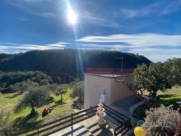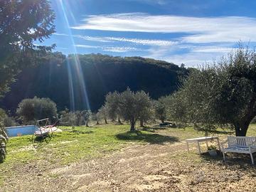 Qui, circa due ettari di terreno completamente recintato abbracciano la proprietà, tra alberi da frutto, ulivi e ampi spazi naturali che regalano privacy, silenzio e una sensazione di pace assoluta.