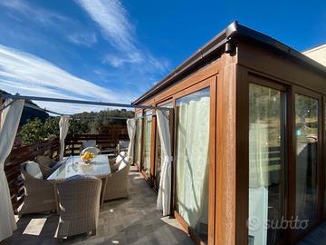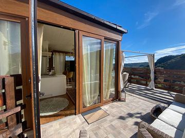o Primo appartamento - 40 mq: un accogliente trilocale impreziosito da una veranda esterna perfetta per le colazioni al sole o le serate in compagnia. La pratica cucina esterna con copertura in PVC e vetrate rende l'ambiente funzionale tutto l'anno, ampliando gli spazi e creando una continuità tra interno ed esterno.