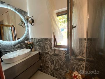 o Secondo appartamento - 60 mq su due livelli: al piano seminterrato ti accoglie una graziosa zona giorno con open space e bagno di servizio, mentre il primo piano -- raggiungibile tramite una suggestiva scala in legno -- ospita una camera matrimoniale luminosa e un bagno super rifinito, elegante e moderno.