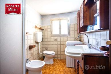 Attualmente, l'abitazione al piano primo si compone di ampia zona giorno open-space di circa 43 mq., due camere doppie (mq. 17,5 e 14), bagno finestrato e poggiolo a livello; c'è la possibilità di ripristinare la terza camera fruendo di una parte della zona giorno.