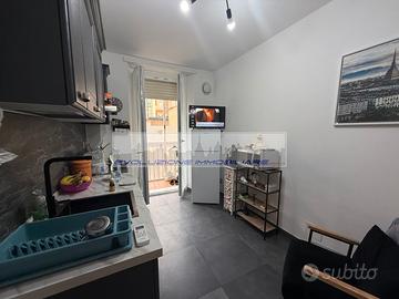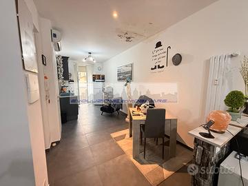 L'appartamento è composto da ingresso nella zona giorno con cucina a vista, zona notte, bagno con box doccia e balcone verandato che dà sull'interno cortile.