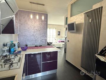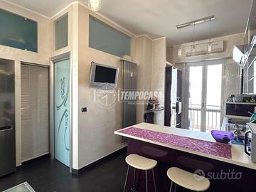 L'appartamento è composto da ingresso open space con cabina armadi, cucina, bagno finestrato e due balconi. L'immobile è stato oggetto di una ristrutturazione totale nel 2011 che ha previsto la posa di pavimentazione in gres porcellanato, la sostituzione dei serramenti con modelli a taglio termico, l'installazione di tapparelle elettriche in alluminio coibentato, il rifacimento dell'impianto idraulico, una porta in vetro serigrafata realizzata artigianalmente e climatizzatori inverter con pompa di calore.
