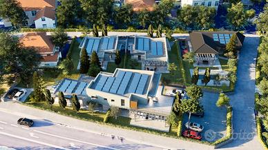 OPICINA - Via Hermada - nuovo complesso residenziale di prossima realizzazione composto da tre ville singole ed una una piccola ed esclusiva palazzina con tre appartamenti: due al piano terra con giardino e posti auto di proprietà ed un attico al livello superiore. L'esclusivo attico qui proposto è situato al primo piano e disposto su di un unico livello per totali mq.160 + 70 di terrazza!; internamente si compone di ingresso, salone con cucina a vista (o chiusa a secondo delle esigenze), matrimoniale con ulteriore poggiolo, due ampie stanze singole e due bagni completi finestrati. A completare la proprietà un vano tecnico per il posizionamento della caldaia e di una comoda lavanderia nonché ampio ripostiglio. Tre posti auto. Riscaldamento a pompa di calore con pavimento radiante il tutto coadiuvato da pannelli fotovoltaici e relativa batteria di accumulo. Classe energetica A4. Consegna seconda metà 2027. Per ulteriori informazioni e visione delle planimetrie siamo a Vs. disposizione nei ns. ufficio di Opicina.