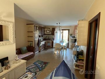 In una delle zone più tranquille e richieste di Osimo, vendesi appartamento, situato al piano terra, libero su tre lati, di 95mq. (compreso garage). L'immobile è composto da luminoso soggiorno con cucina a vista, camera matrimoniale, cameretta e bagno con vasca. Una scala interna a chiocciola collega il piano principale al piano seminterrato, dove si trovano il garage e un secondo bagno con doccia. All'esterno, un giardino privato con una zona piastrellata ideale per pranzi e cene estive e un terrazzo che circonda l'intera casa, offrono spazi perfetti per momenti di relax e vita all'aperto. L'appartamento gode inoltre di una bellissima vista panoramica su Osimo. L'abitazione dispone di riscaldamento a pavimento.