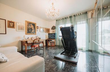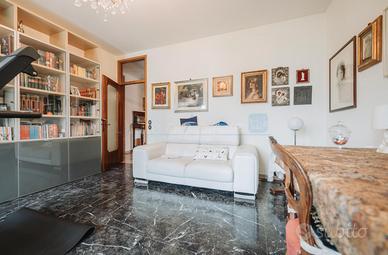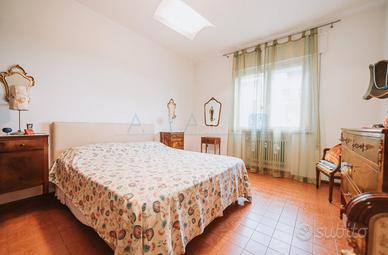 La zona notte, accessibile tramite un disimpegno centrale, ospita una camera matrimoniale dalle generose dimensioni, una camera doppia, una camera singola e un comodo studio, ideale per lavorare da casa o come spazio multifunzionale. Il tutto è servito da due bagni finestrati, assicurando comfort e praticità per tutta la famiglia.