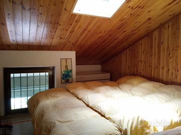 Al primo piano due stanze ampie matrimoniali con 1 letto singolo in ognuna, ci dividono un bagno con doccia, armadio a muro e piccolo salottino.