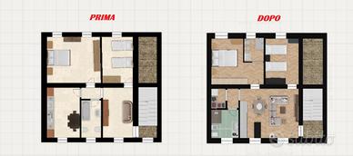 Composto ampio soggiorno, cucina abitabile, 1 bagno, 2 ampie e comode camere da letto.