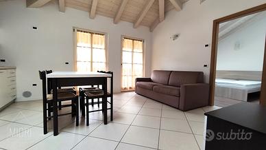 Padergnone, a sud del paese nella zona dei Due Laghi, vendesi in esclusiva elegante miniappartamento mansardato, completamente arredato, con balcone e ampia cantina, in recente palazzina del 2007 con parco condominiale a verde!