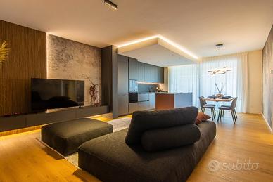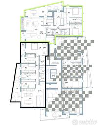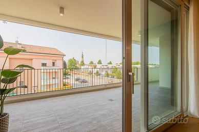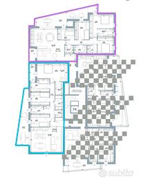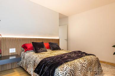 L'appartamento 4 camere è disponibile al quarto e quinto piano e si sviluppa su una superficie ottimamente distribuita: luminosa zona giorno open space di 50mq con angolo cottura, 3 ampie camere matrimoniali ed una singola, doppi servizi finestrati, pratica lavanderia e spazioso terrazzo abitabile. Completa la proprietà un garage doppio ed un posto auto esterno riservato.