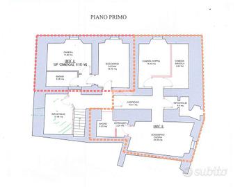 Il piano primo, di circa 160mq, si presta per essere ristrutturato in un unica ampia soluzione o divisa in due appartamenti più piccoli, idealmete un trilocale con terrazzino e un bilocale.