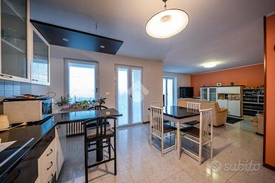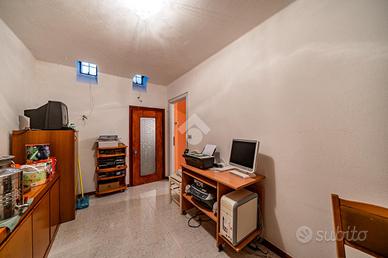Il corpo principale si sviluppa al piano primo ed è un luminoso pentalocale dotato di ampio balcone che garantisce una vista aperta sulla Lessinia. L'abitazione è così composta: zona giorno open space, due ripostigli, due bagni finestrati e tre camere da letto. L'immobile si presenta in buone condizioni ed è abitabile fin da subito.