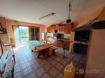 In contesto tranquillo e riservato, proponiamo una soluzione indipendente da cielo a terra con annesso terreno. L'immobile consiste in un bell'appartamento di mq 120 ca. sito al piano terreno/rialzato, su un unico livello, composto da ingresso, ampio soggiorno con camino e cucina abitabile entrambi aggettanti su portico e giardino, tre camere da letto, due bagni ed ampio ripostiglio. Al piano primo troviamo due appartamenti, ognuno di 50 mq ca. , entrambi da rifinire, dotati di portico coperto e balconi. Nel piano seminterrato, ma in parte fuori terra, trovano posto due ampi garage (uno adibito a tinello con cucina e forno a legna). La soluzione abitativa, destinata per la sua natura anche ad un nucleo familiare numeroso, gode di un'ottima esposizione e di una corte esterna della consistenza di 1.100 mq ca. tra coperto e scoperto.