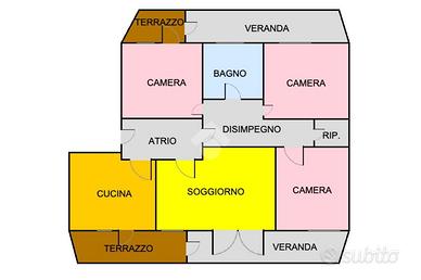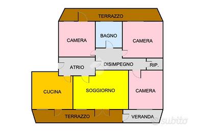 * Appartamento con cucina, soggiorno, tre camere, bagno, disimpegno e ripostiglioSecondo piano