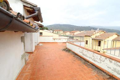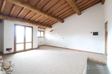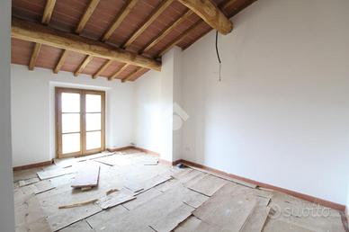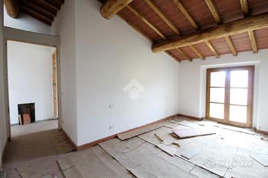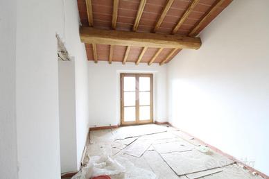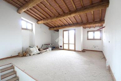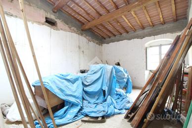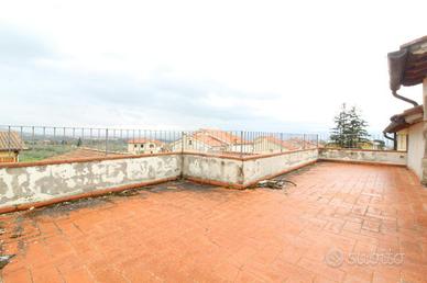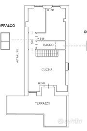 Al secondo ed ultimo piano invece si accede ad un trilocale completamente ristrutturato nel 2008, con open-space all'entrata oltre camera matrimoniale, studio e bagno con lucernario. Accesso al terrazzo panoramico. Al piano terreno troviamo quattro cantine di circa 80 mq. Completa locale esterno ad uso lavanderia nel vano scala che collega i due piani.