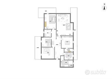 Completano la soluzione, due magazzini al piano terra ad uso deposito, di c.a. 25 mq cadauno, con accesso dalla corte di esclusiva proprietà di c.a. 462mq.