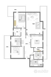 Intero fabbricato composto da: magazzino commerciale di c.a. 100 mq unico vano con ripostiglio, bagno e due accessi porta/vetrina, su strada principale di gran flusso carrabile; due appartamenti di c.a. 180 mq l'uno, posti al primo e secondo piano; terrazzo di c.a 180 mq al terzo e ultimo piano.