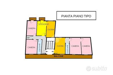 Anche gli altri due alloggi sono disposti uno sopra l'altro. Si tratta di un trilocale con cucina, due camere e bagno, in stato originario e privo di riscaldamento ma con canne fumarie, e di un bilocale composto da cucina, bagno e camera, anch'esso senza riscaldamento ma con infissi e impianto elettrico nuovi, oltre alla presenza di canne fumarie.