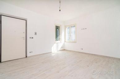 Il cortile interno è privato, con area verde, e con accesso carraio esclusivo da Via Fogliotti.