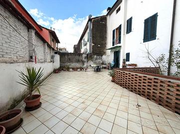 Al piano terra vi è il fondo commerciale, attualmente adibito a parrucchiere e recentemente ristrutturato, suddiviso in due vani più ripostiglio e bagno. Sullo stesso piano vi è anche uno spazioso cortile a cui può accedere tutta la palazzina.