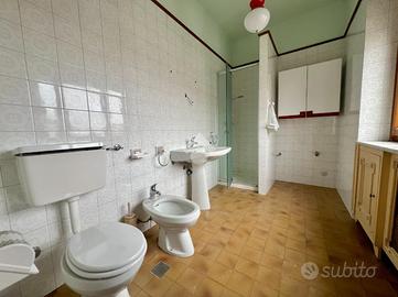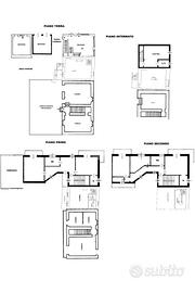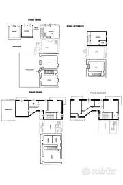 La palazzina è stato costruita nel 1969 e si sviluppa su più livelli e offre spazi ben distribuiti. Il negozio al piano terra è di 35 mq e dispone di una scala interna che separa i due alloggi posti ai piani superiori, di 80 mq ciascuno. Il primo alloggio è al piano primo ed è composto da un ingresso, un tinello ed una cucinotta, una camera da letto ed un bagno. Un poetico terrazzo dotato di una meridiana è a disposizione del piano primo. Il secondo alloggio è al secondo piano ed è composto da quattro camere da letto ed un bagno. E' presente al piano interrato una cantina con il vano caldaia. Entrambi gli alloggi sono originali rispetto alla costruzione, ma il primo piano è dotato di doppi vetri. Il tetto è stato ripassato recentemente. Il riscaldamento è alimentato da radiatori di una vecchia caldaia a gasolio che si puo sostuire con un'alimentazione a metano o pellet.