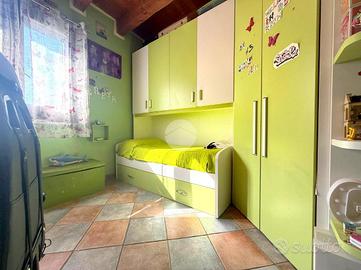 L'immobile si compone internamente di un ingresso,cucina-soggiorno, una camera da letto, due camerette, due bagni, una lavenderia e un ripostiglio.