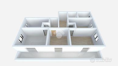 Troviamo al primo piano due appartamenti composti da cucina, soggiorno, tre cemere da letto e bagno finestrato.