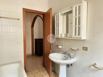 L'appartamento trilocale offre sala e cucina separate, due camere matrimoniali, un bagno, un balcone e un terrazzo.