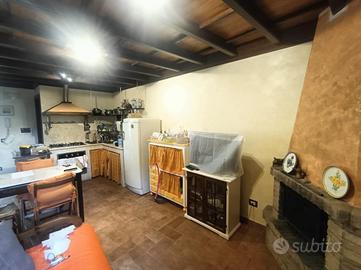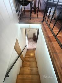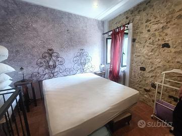 Tramite una scale esterna entriamo nell'appartamento composto da soggiorno con angolo cottura e camino, camera matrimoniale e bagno con box doccia e fienstra al primo piano e una seconda camera matrimoniale al secondo piano.