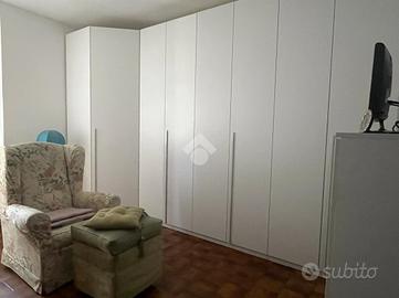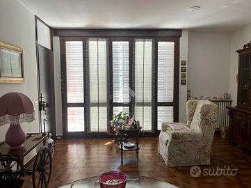 E' disposto su due piani. Al piano terra sono presenti due studi/uffici con ingresso indipendente. Uno diviso in due locali oltre a servizio e l'altro un unico locale con servizio e ripostiglio al rustico.