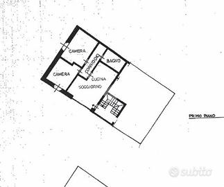 Al piano primo i due appartamenti hanno ingresso da vano scala comune. Sono un bilocale ed un trilocale, entrambi con doppia esposizione. Hanno unica caldaia con gestione indipendente del riscaldamento.