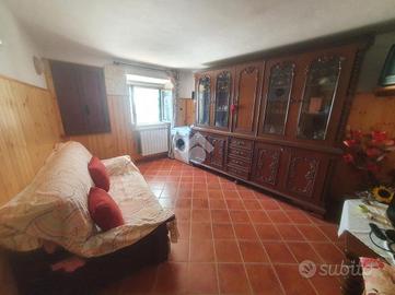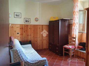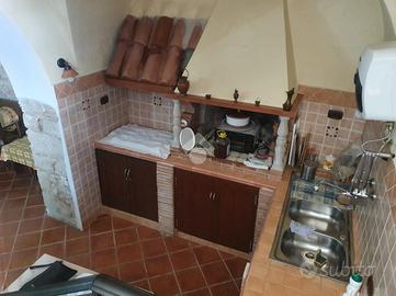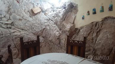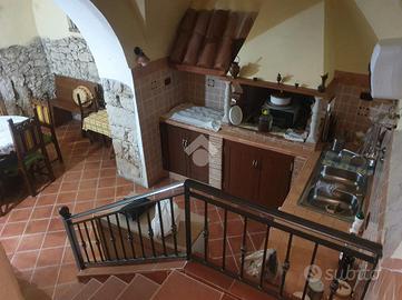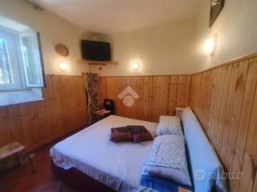 Al piano d'ingresso troviamo una zona giorno accogliente, composta da una cucina abitabile e da un salotto con pareti in pietra viva, che conferiscono calore e autenticità all'ambiente.