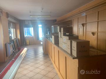 -al piano terra ingresso ampio salone open space di circa 170 mq adibito a bar,sala slot,ristorante ecc gia' arredato e avviato e in funzione fino a pochi mesi fa, ma vi è possibile in alternativa ricavare 2 appartamenti autonomi