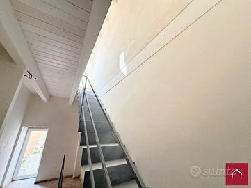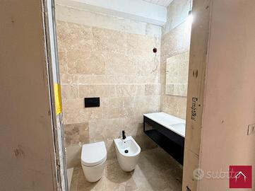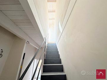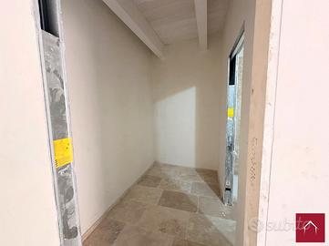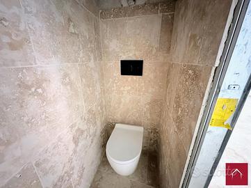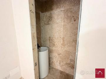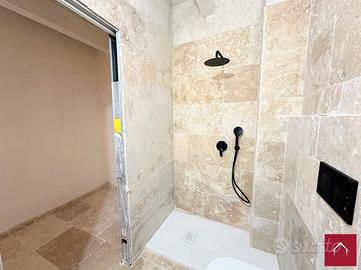 L'immobile è composto da tre piani; al piano terra troviamo zona giorno con bagno di servizio, al primo piano disimpegno, camera da letto matrimoniale, cabina armadio e secondo bagno, invece al secondo piano, terrazzo, inoltre, dispone di Infissi a taglio termico, pavimento in travertino e rubinetteria nero opaco.
